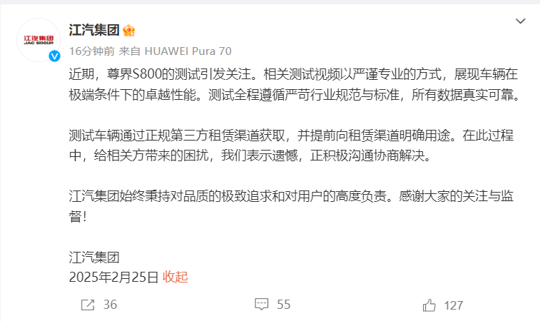 江汽集团回应“迈巴赫测试争议”:测试全程遵循严苛行业规范与标准 所有数据真实可靠炒股配资服务江汽集团回应“迈巴赫测试争议”:测试全程遵循严苛行业规范与标准 所有数据真实可靠